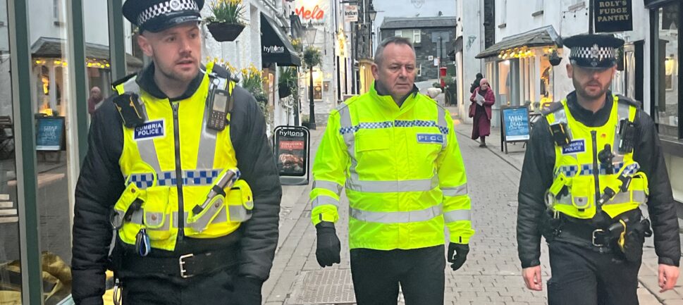 Police, Fire and Crime Commissioner (Commissioner), David Allen, joined Police Officers on an Operation Enhance patrol. The Commissioner joined PC Stefan Blaga, PC Dan Evans, PC Ellen Hindmarch and PC Sam Ellis in Kendal and Bowness-on-Windermere.